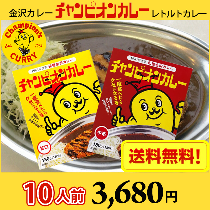 【送料無料】10人前 金沢カレー チャンピオンカレー レトルトカレー 甘口・中辛 選べる10食 (北海道 沖縄 離島は別途送料1200円かかります) / カレー カレールゥ ルー 金沢カレー 濃厚 おいしい レトルト