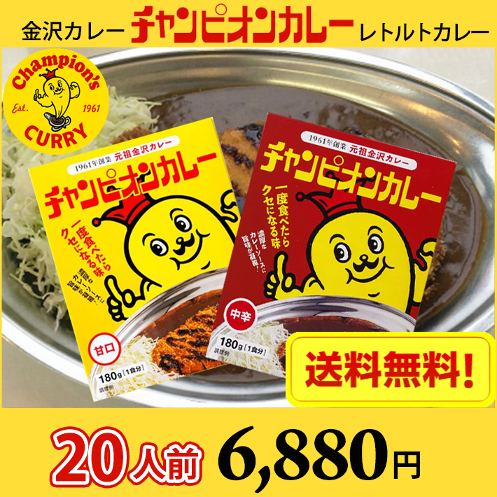 【送料無料】20人前 金沢カレー チャンピオンカレー レトルトカレー 甘口・中辛 選べる20食 (北海道 沖縄 離島は別途送料1200円かかります) / カレー カレールゥ ルー 金沢カレー 濃厚 おいしい レトルト