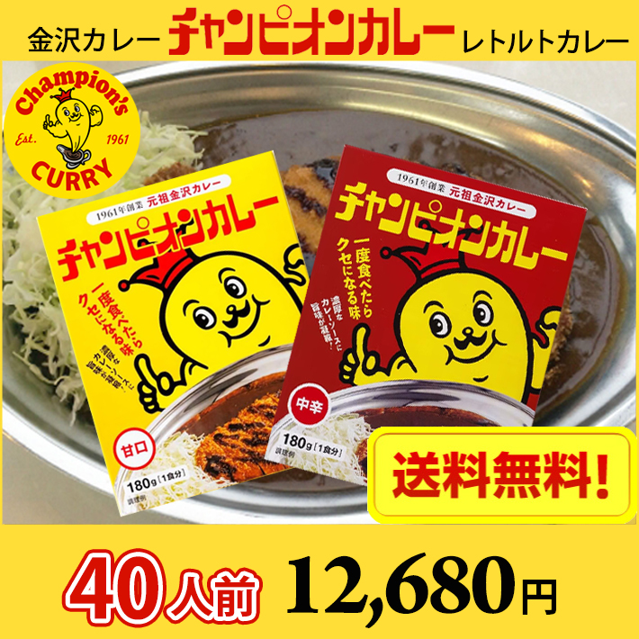 【送料無料】40人前 金沢カレー チャンピオンカレー レトルトカレー 甘口・中辛 ケース販売(北海道 沖縄 離島は別途送料1200円かかります) / カレー カレールゥ ルー 金沢カレー 濃厚 おいしい レトルト
