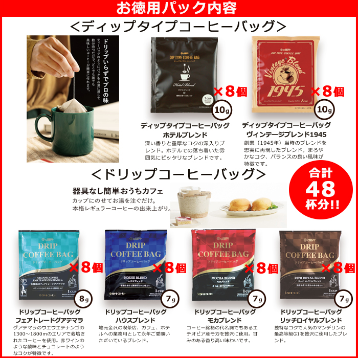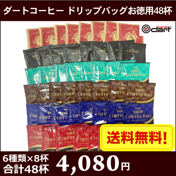 ダートコーヒー ドリップバッグコーヒー・ディップタイプコーヒーバッグお徳用48パック 1杯約89円 家庭用・自分用 送料無料!!(北海道別途700円、沖縄県配送不可)